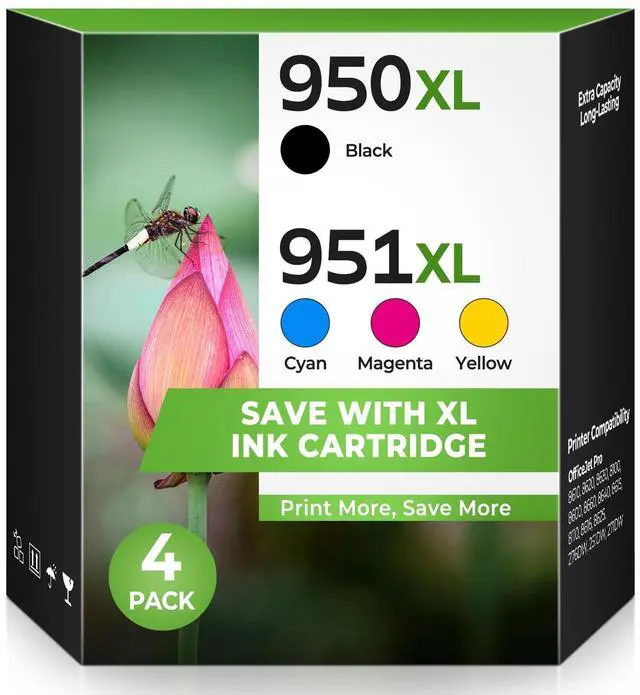Package Content: 4pack 950XL 951XL Ink cartridges include one black 950XL ink cartridges, one cyan 951XL ink cartridges, one yellow 951XL ink cartridges, one magenta 951XL ink cartridges ^^ Extra-large 950XL951XL