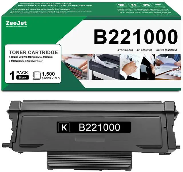 What's in the box: 1 x B221000 Black Toner Cartridge ^^ Zeejet B221000 Toner Cartridge offer a convenient printing solution with easy installation, delivering superior, vividly colored print results. Each B221000 Toner cartridge undergoes strict quality testing to ensure clear, consistent performance ^^