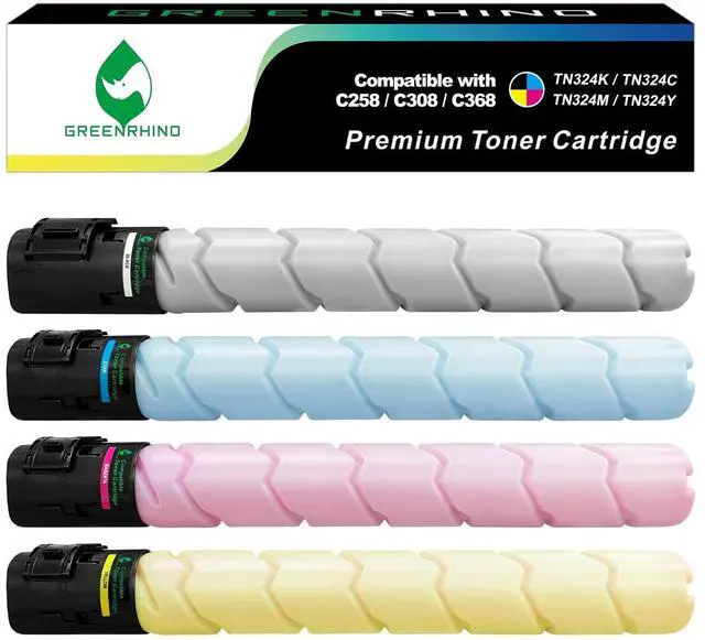 Package Contents: 1 Black-TN324K (A8DA130); 1 Cyan-TN324C (A8DA430); 1 Magenta-TN324M (A8DA330); 1 Yellow-TN324Y (A8DA230) Compatible Toner Cartridges ^^ This is an Alternative Replacement for OEM Toner Cartridge ^^ GREENRHINO was Established in June 2001, and Using Only the Best and Right Combination of Components for each Model of Cartridge.