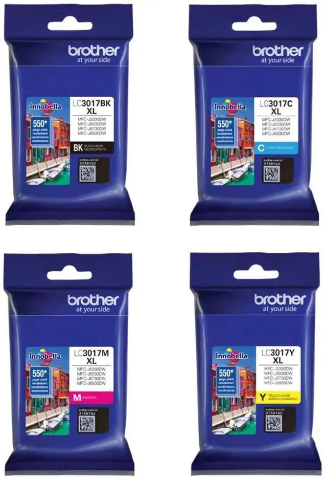 The Genuine Brother LC3017 (LC-3017) (BK/C/M/Y) High Yield Color Ink 4-Pack (Includes 1 each LC3017BK, LC3017C, LC3017M, LC3017Y). Each ink cartridge works with the following