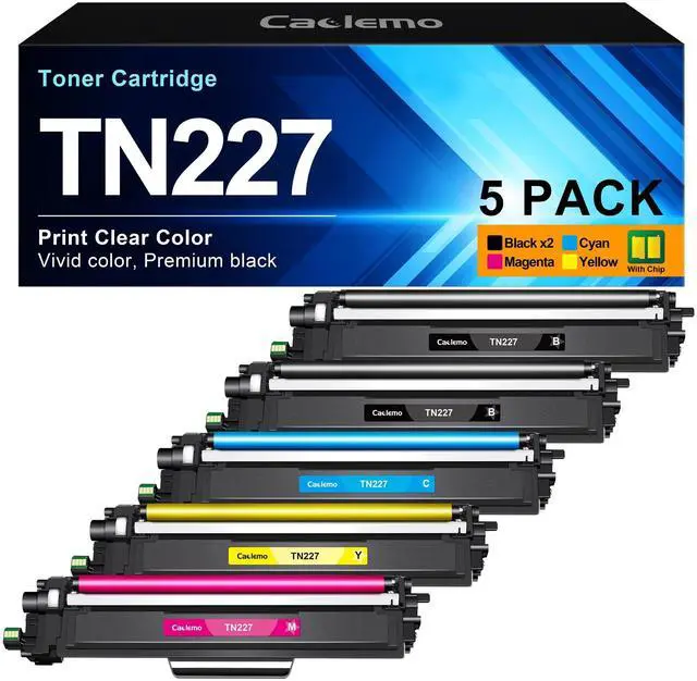 Package Content: 5 packs TN-227BK/C/M/Y Toner Cartridge including 2 x TN227BK, 1 x TN227C, 1 x TN227M, 1 x TN227Y (Total 5 Pack With Chip) ^^ 4. Compatible with Brother HL L3210CW HL L3230CDW HL L3270CDW HL L3290CDW MFC L3710CW MFC L3750CDW MFC L3770CDW HL L3230CDN DCP-L3510CDW DCP-L3550CDW Toner Printer ^^ 5. Our compatible brother tn227 tn-227bk/c/m/y high yield toner cartridges also available with brother tn223 tn-223bk/c/m/y toner brother keep your ideas flowing with vibrant color, smooth print and reliable quality