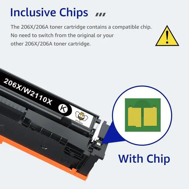 With Chip: CMYBabee's Compatible with HP 206X toner cartridges come equipped with built-in chips, streamlining the process and eliminating the need to transfer old chips to the 206A 206X cartridges ^^