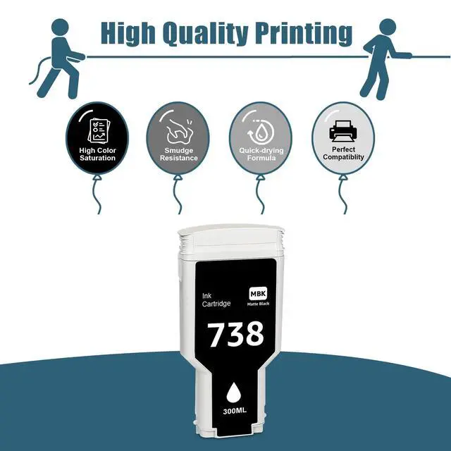 Products: 1 Pack replacement Compatible for HP 738 Black DesignJet Ink Cartridge 300ml, 498N8A.