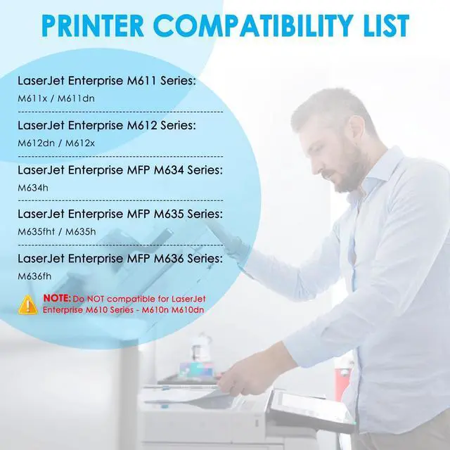 Printer Compatibility: These toner cartridges are fully compatible for HP LaserJet Enterprise M611 M611x M611dn M612 M612dn M612x, LaserJet Enterprise MFP M634 M634h M635 M635fht M635h M636 M636fh Series Printer.