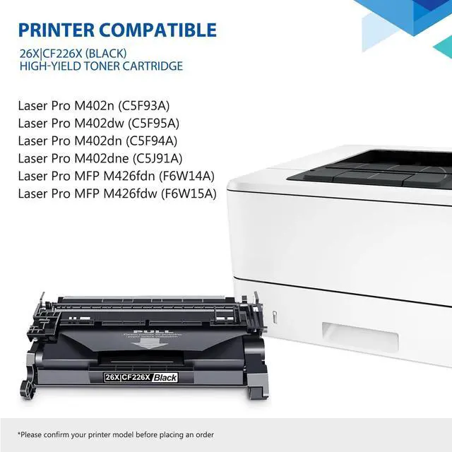 This cartridge works with: Laser Pro M402n M402dw M402dn M402dne; Laser Pro MFP M426fdn M426fdw Printer ^^ Count on reliable, high-quality printing and save time by avoiding common printing issues; And use our Toner Cartridges to avoid toner leaks, premature failures or dangerous code as much as possible ^^ Buy sustainable Recycled content is included in our toner cartridges; Our Toner Cartridge is voluntarily designed and tests its printing systems to meet Eco-label emissions guidelines.