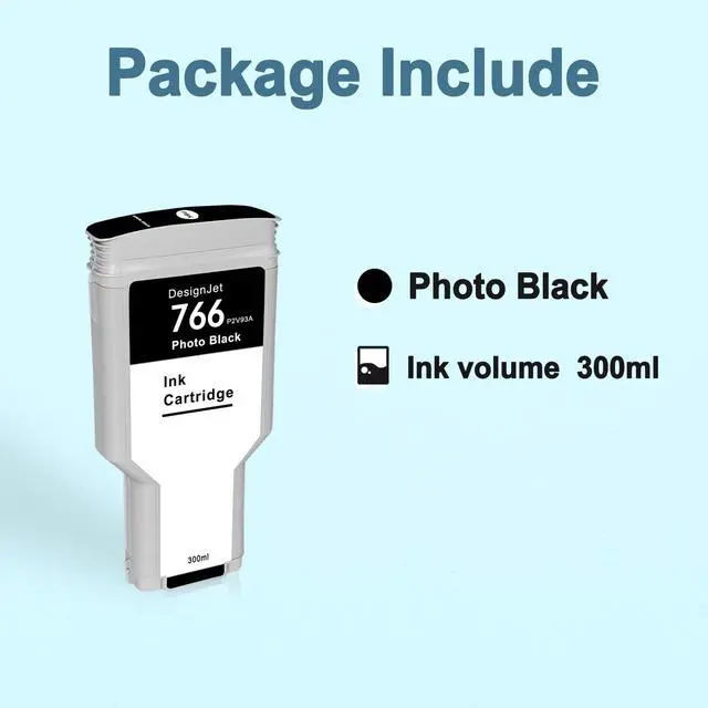 Package Includes: 1 x matte black 766 ink cartridge (Model: P2V93A) with an ink volume of 300ml ^^