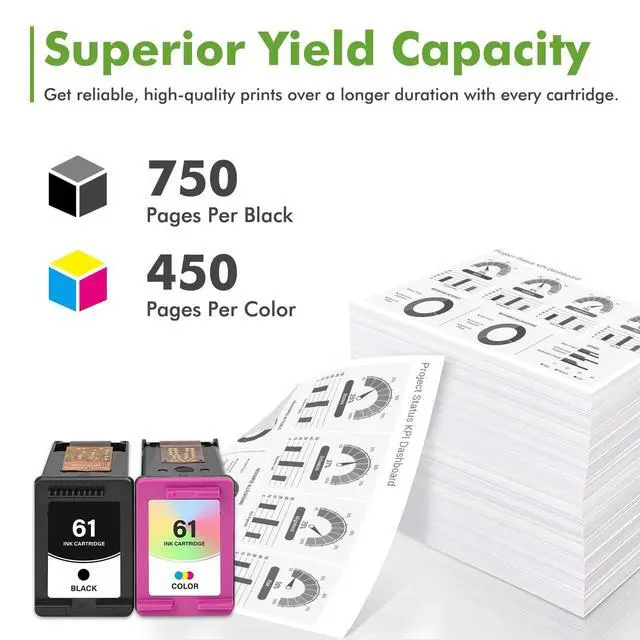 High Page Yield: Up to 750 pages for each 61xl black ink and 450 pages for each 61xl color ink (Letter A4, at 5% coverage) ^^ Compatible for
