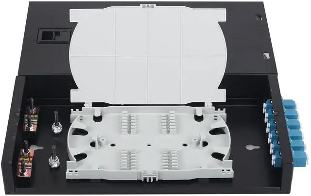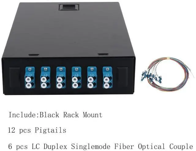 Package IncludedBlack mount, 12 pcs pigtails, 6 pcs lc duplex singlemode couplers. ^^ Large Space Fusion DiscEach tail fiber has a separate winding channel, effectively protecting the fiber. ^^ Snap on DesignAchieving quick installation and maintenanceNo need to tighten screws. ^^ Thickness of Plate 1.0 mm; thickened and reinforced cold rolled sheet, sturdy and stableCorrosion resistant coating, long service life. ^^ Widely UsedData centers, premise installations, optical fiber LAN, WANtelecommunication and data processing networks CATV, instruments, communication system.