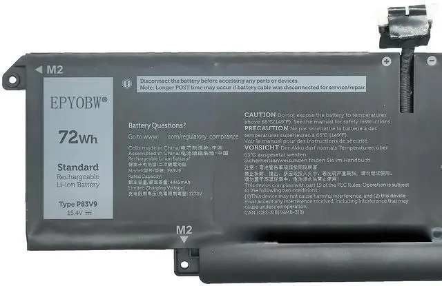 Condition: Brand New. ^^ Replace Part Number P83V9 0CDTT2 CDTT2 0YXP8T YXP8T 0MGCM5 MGCM5 0TX269 TX269 41CP8/61/60 ^^ Compatible with Laptop Models For Dell Precision 5470 Series; For Dell Precision 5480 Series; For Dell Precision 5490 Series. ^^ Purchase Skills Please open the back cover of the laptop before ordering and make sure that the original battery model is consistent with the listing. After getting the battery, please install the battery correctly, make sure that the battery connector is firmly connected to the laptop motherboard, and use the original charger to charge the laptop. Discharge the new battery to 5% (not 0%), then charge and cycle 3-4 times to wake up the new battery. ^^ EPYOBW Promise All EPYOBW's batteries are certificated by UL/CE/FCC/RoHS. Our batteries are tested by strict quality control standards to ensure that the capacity is true, stable current, low self-discharge. And we also have short circuit, overheat, and overload protections. We are confident in the performance of replacement batteries and professional service.