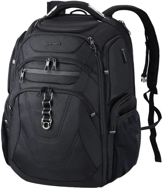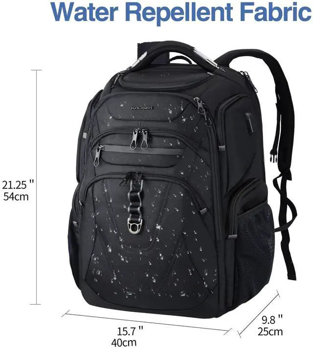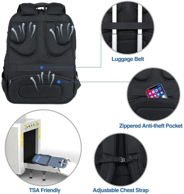USB PORT DESIGN: Built-in USB PORT is convenient to charge your cell phone in a safe way (POWER BANK is NOT included) ^^ FUNCTIONAL & SAFETYA well-knitted luggage strap is quite convenient for you to fix the backpack on the trolley of your luggage, making your journey and travelling more convenient wherever you go. Design of an air-flow back padding system and a secret pocket ensures great comfort and safety in your journey. RFID Pockets with Identity protection function protects date encoded on most IDs, credit cards and passport ^^ This practical laptop backpack is large and durable, which is perfect for college, travel, business, everyday use and outdoor activities. Practical gifts for friends, mother, father, her or him