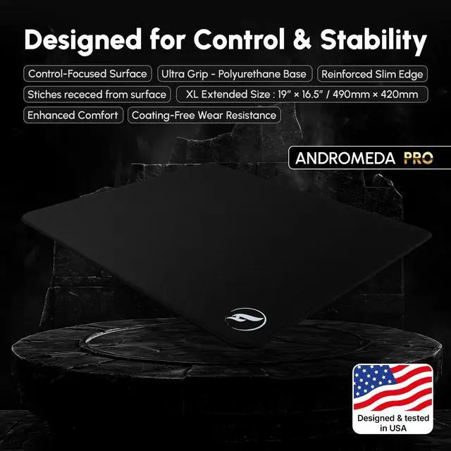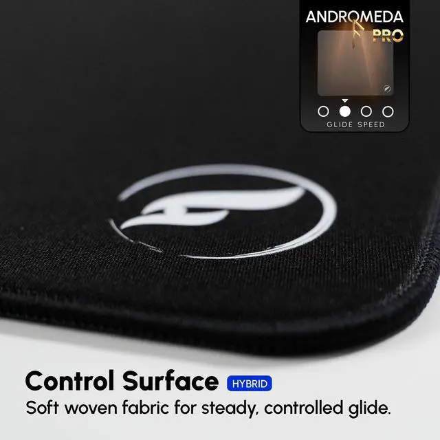 Introducing the Andromeda Pro mouse pad, the culmination of our mouse pad innovation, featuring an enhanced Andromeda surface with ergonomic improvements. Our signature Andromeda surface offers a balanced medium speed glide and control, making it ideal for any FPS game. We've lowered our fine stitching to minimize irritation and boost durability, and added a 4mm Poron base for increased stability and comfort. Enjoy a robust construction backed by a 1-year warranty.