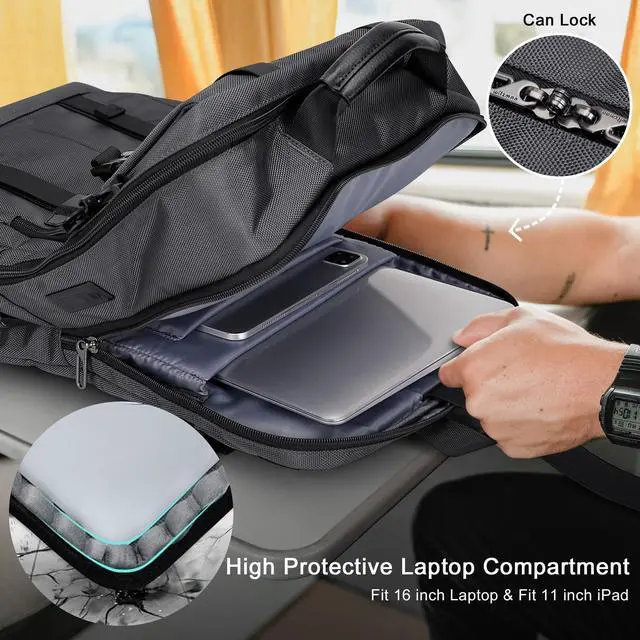 ^^ Separate Laptop Compartment: A separate laptop compartment can fit 16 inch laptop. Lightweight backpack for travel fits overhead and under the seat. Meanwhile, external USB charger interface and headphone interface, built-in detachable charging cable and headphone cable. ^^ Anti Theft Pocket and