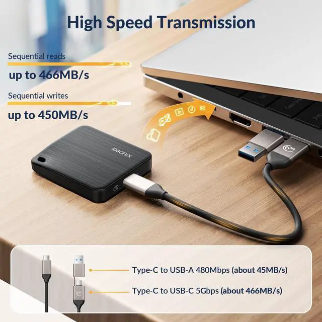 Robust Design: This Portable SSD has an advanced brushed surface, resisting fingerprints and scratches. Its unique hanging - hole design adds style and enables easy carrying with a lanyard, whether in pockets, backpacks or on keychains. ^^ High - speed
