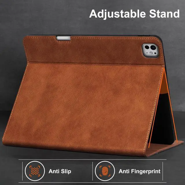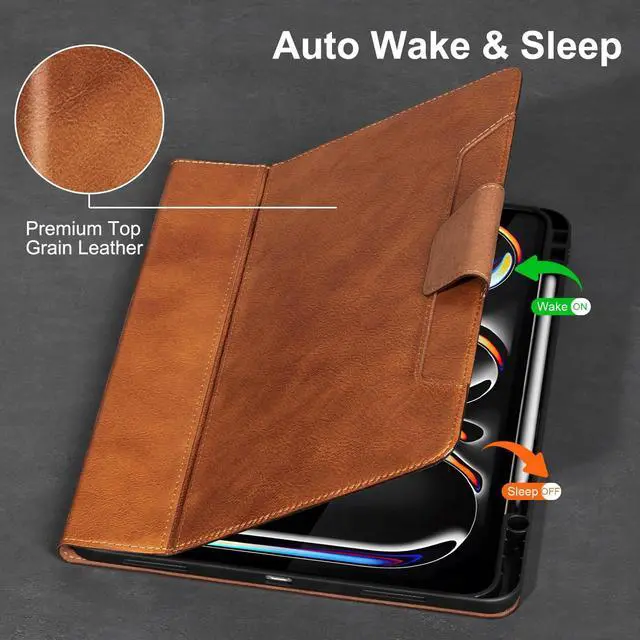 Gexmil Genuine Leather Case for iPad Pro 13 Inch (M5/M4) 2025/2024 with Pencil Holder,Magnetic Closure,Protective Smart Leather Folio Cover Adjustable Stand Auto Sleep/Wake,Vegetable Tanned Brown