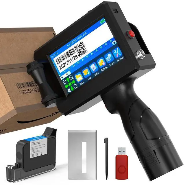 0.5 -Inch Nozzle & Custom Content ImportEquipped with a 0.5 -inch nozzle and 42ml quick-drying ink, this Handheld Inkjet Printer delivers crisp text, QR codes, and logos on metal, wood, glass, fabric, and more. Designs are easily imported via USBno WiFi or app needed. Print widths range from 2mm to 12.7 mm with unlimited length, perfect for printer for tshirts printing or industrial labeling. ^^ 4.3 -Inch Smart Touch & 28-Language FlexibilityTake full control with the 4.3 -inch HD touchscreen on this Portable Inkjet Printer. Edit fonts, dates, and logos directly or import files via USB.