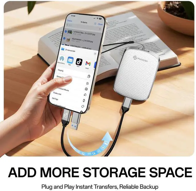 It can be easily put into a briefcase or a pocket of clothes. ^^ Seamless cross-device use Whether you are working or creating for entertainment, you can control your content at any time through your smartphone, PC and other devices with the USB C&A cable. You can connect the PHIXERO P5PLUS Portable SSD to your devices without any operation. It is convenient for everyone to use their mobile phones to directly read files for file sharing, data transmission, and video playback while working or studying. ^^ Rich Compatibility P5PLUS Portable Solid State Drive is compatible with Windows / Mac OS / Linux / Android systems and supports all devices with USB C & A ports, including PC / laptop / tablet / smart phone / TV / game console.