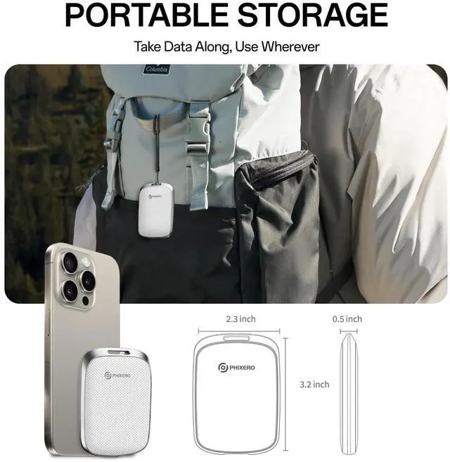 Extremely fast transfer speedP5PLUS External SSD supports continuous read speed of 550MB/s and write speed of 500MB/s. Don't waste a second waiting, transfer all heavy files in seconds, improve the efficiency of transferring/loading videos, photos, files and games. It allows you to get more things done in a short time. ^^ Sturdy and PortablePHIXERO P5PLUS External Solid State Drive adopts anti-drop, anti-vibration, anti-dust, and solid one-piece aluminum alloy frame with high strength and durability, making this portable hard drive keep the drive almost silent when running. The mini design makes it very convenient for you to carry and use.