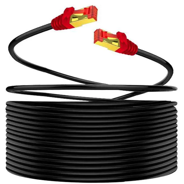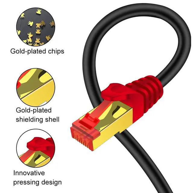 10Gbps HIGH SPEED: This network cord is able to transfer data at speeds of up to 10Gbps over 100m run of cable. PROTECTION FROM INTERFERENCE - Shielded Twisted Pair and RJ45 Connectors to Protect Against EMI/RFI Interference10 GBPS DATA SPEED - Compliant with ANSI/TIA/EIA 568-B, 2-1, Up to 10 Gbps Speed and Meets all Proposed CAT-7