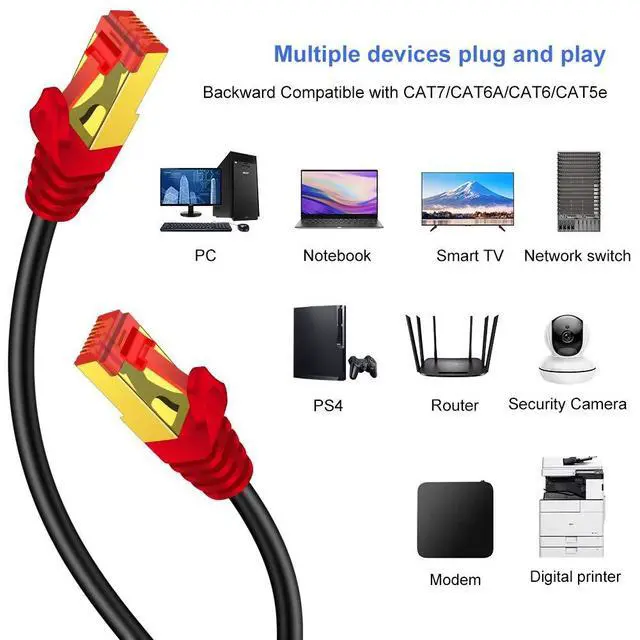 Cat7 Ethernet Cable support bandwidth up to 600MHz, so you can connect to your LAN/WAN segments and networking gear at maximum speeds and surf the net, stream videos, music and other data at high speed without worrying about cables causing a mess.
