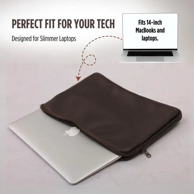 Designed For Mac Laptops: Tailored to fit Mac laptops perfectly, this leather laptop sleeve offers a snug and protective fit. Whether for work or travel, its the ultimate notebook case for professionals and students
