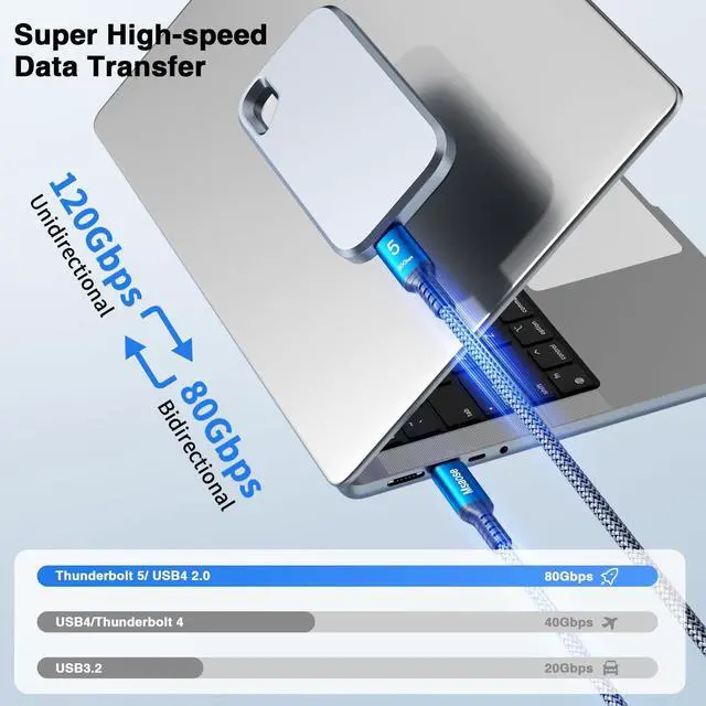 4. Ideal for 8K video editing, large backups, and high-speed SSD transfers. Our 80Gbps USB C video display cable is fully compatible with Thunderbolt