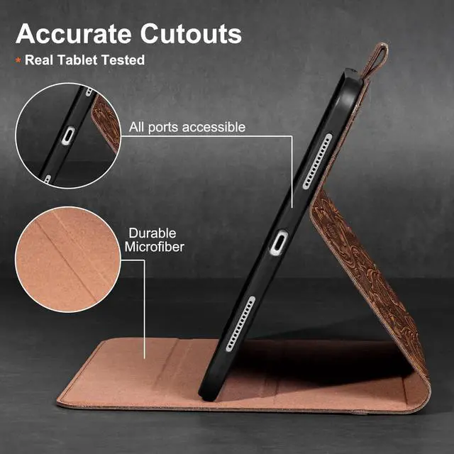 Number: A2836/A2837/A3006). Not compatible with other devices, please confirm the product before purchase. ^^ [PREMIUM GENUINE LEATHER] - GEXMIL iPad leather cases are precision made of genuine cowhide leather. These hides leather selected for quality, strength, character and grain. Besides its stylish look and natural touch, each Gexmil case is unique in the world as the color and pattern of each leather is special. This is where the charm of the leather case. ^^ [MATERIAL&CRAFT] - Exterior is genuine leather protecting camera and tablet body with inner super-fibre lining protecting screen and TPU full package soft inner shell. Full access to all features (Cameras, Speaker, Ports and Buttons); each cutout is tested with relevant tablet before package to make sure working perfectly ^^ [COMPLETE FUNCTIONS] - Support magnetic closure, auto wake/sleep; Cover features multi-angles stand mode. Shockproof protective Leather case for accident falling, anti slip and anti fingerprint. Honeycomb designed TPU shell accelerating heat dissipation, durable for wrestling. ^^ [LEATHER PROTECTION] - Due to the characteristics of leather, do not contact with water for a long time, and do not touch items with temperature over 60 degrees, which helps to ensure the long-term property of leather.