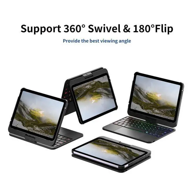 Equipped with an intelligent touchpad, precise control and navigation enable the integration of tablet and computer functions, providing an excellent laptop experience. Use multiple gestures to control your iPad mini. Edit documents, browse web pages, and build presentations at an unparalleled speed, bringing you the convenience of high productivity. Navigation, even the most complex workflow, has never been so simple. ^^ 7-color backlight and 3 levels: With just a gentle touch, you can easily switch between gorgeous colors and levels of brightness. You can adjust the keyboard of the iPad mini 6 to your favorite color according to your own preferences, and easily make the iPad mini protective case with the keyboard more fashionable. It is also convenient to operate the keyboard in dim light and can bring you different visual enjoyment and comfortable typing experience through the iPad mini 6.