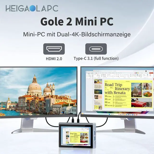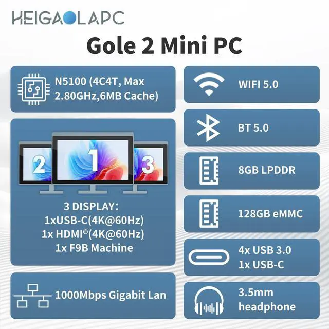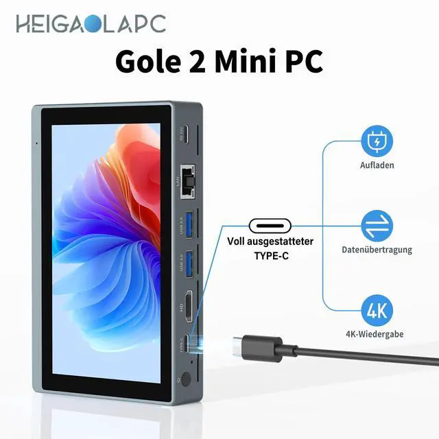 All-in-One Mini PC with Integrated 5.5 -Inch Touchscreen Equipped with a 5.5 -inch IPS touchscreen display (7201280) and a compact design (1429122 mm). Powered by an Celeron N5100 processor, 8 GB RAM, and 128 GB storage for smooth multitaskingideal for home office, digital signage, or industrial applications. ^^ Comprehensive Connectivity & Dual 4K