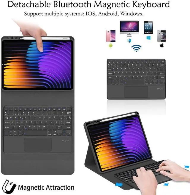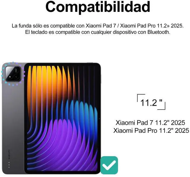 Compatible ModelsThis keyboard case compatible with Xiaomi Pad 7 / Xiaomi Pad 7 Pro 11.2 inch Released 2024. Please check your tablet model before placing an order ^^ Multi-Touch TrackpadThe smart tablet keyboard with a built-in precision trackpad that can quickly and easily navigate your 12.1 inch xiaomi pad 7 pro tablet. Full multi-touch gesture support lets you redefine productivity by allowing you to edit documents, build presentations, and browse the web with unparalleled speed ^^ Magnetic Detachable Wireless KeyboardThe xiaomi tablet 11.2 inch xiaomi pad 7 pro keyboard and case are magnetically detachable, which means the pad 7 tablet keyboard or case can be used alone, ultra-strong magnetism makes the keypad securely attached to the protective case while typing ^^ Adjustable Multi-Angle StandThis for xiaomi pad 7 pro 11.2 2024 sturdy leather case with keyboard has 3 anti-slip grooves to adjust the viewing angle as you like, make your tablet stand steadily.