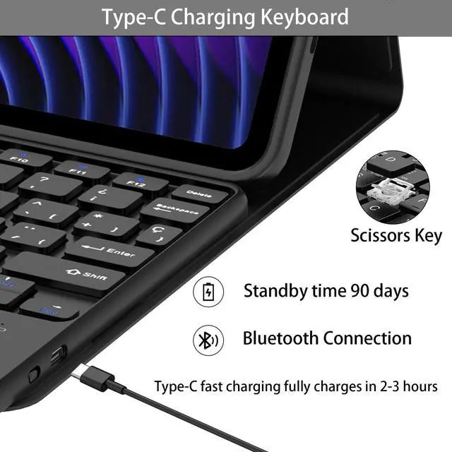 And its keys are quiet and comfortable. The xiaomi pad 7 pro 11.2 inch keyboard adopts the more general type-c interface, charging for 2-3 hours, and can work continuously for up to 70 hours under normal use. The xiaomi pad 7 2024 11.2 -inch keyboard comes with power-saving mode, long periods of non-use will enter the hibernation state ^^ Illuminated TypingBoriyuan for 2024 xiaomi pad 7 pro 11.2 case with keyboard with a full row of the laptop-like shortcuts is customized for your xiaomi tablet. The xiaomi pad 7 11.2 inch keyboard made of scissors structure, uses high-quality ABS keys to reduce fatigue during long typing sessions, providing a responsive, reliable typing experience.