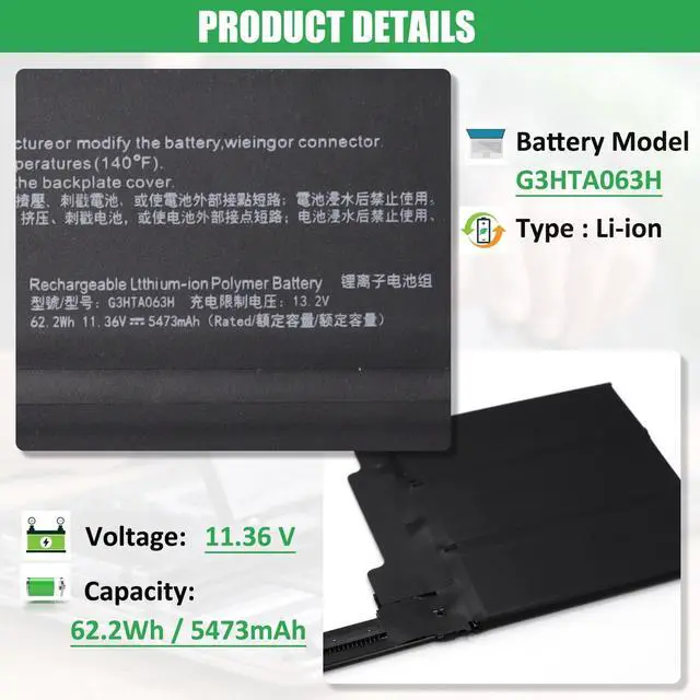 COMPATIBLE PART NUMBER: Battery G3HTA063H G3HTA062H G3HTA040H G3HTA041H ^^