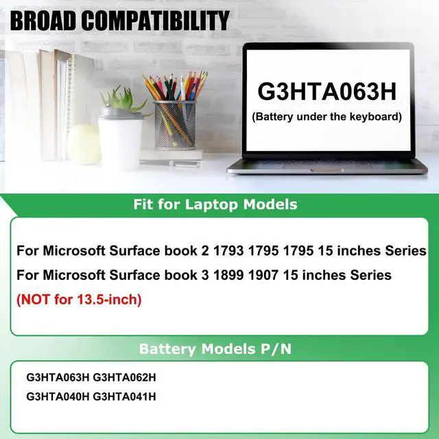 COMPATIBLE LAPTOP MODELS: Battery replacement for Microsoft Surface book 2 1793 1795 1795 15 inches; for Microsoft Surface book 3 1899 1907 15 inches Series (NOT for 13.5 -inch) ^^