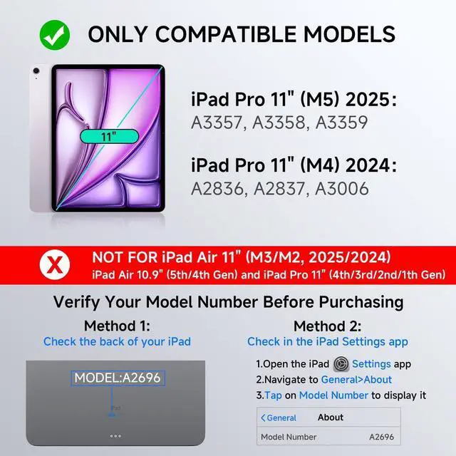 Compatible Models Our ipad case with keyboard is designed exclusively for iPad Air 13 inch (M3/M2, 2025/2024) and iPad Pro 12.9 inch (6th/5th/4th/3rd Gen, 2022/2021/2020/2018).