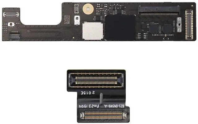 Part Numbers: MQKP3xx/A, MQKQ3xx/A, MQKR3xx/A, MQKT3xx/A, MQKU3xx/A, MQKV3xx/A, MQKW3xx/A, MQKX3xx/A ^^ What's Include1Piece*Interposer Board, 1Piece*Interposer Board Cable, 1Piece*Fiber Polishing Cloth, 1Piece*Ultra Thin and Bendable Metal Pry (Separate the Interposer Board from Topcase) ^^ DescriptionReplace a corroded or damaged daughterboard, this board integrates different interfaces which connected components include headphone jack, touch id power button, lid angle sensor, keyboard backlight, keyboard and motherboard ^^