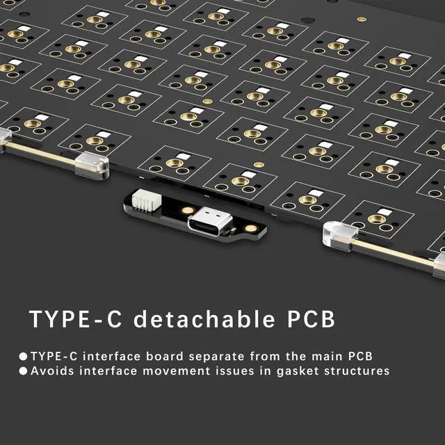 Keyboard Kit: FR4 + gold-plated keyboard PCB, anti-oxidation and corrosion-resistant, high safety, PCB lateral slots for improved key softness.