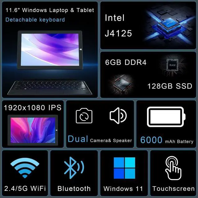 Powerful & Fast Tablet: Equipped with a 2.7GH z Intel J4125 Quad-core CPU, 6GB RAM 126GB ROM, powerful GPU and bluetooth keyboard, this Windows 10 tablet is ready for work, fun, and gaming ^^ 2 in1