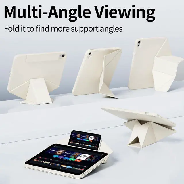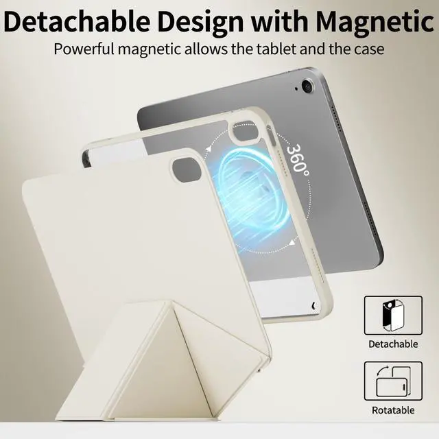 (Note: Pencil is not included in the package) ^^ MAGENETIC CLEAR HARD PC BACK SHELLThe back shell of the Clear iPad Case is made of transparent hard PC material, which provides excellent protection and can perfectly display the original appearance of your iPad. (Please tear off the transparent film on the back before use). The round magnet can be attached to the protective case or any other object with a magnet. ^^ STABLE STAND & 5+ Support AnglesThis iPad Case can be adjusted to a stable more than 5+ Support Angles stand, you can watch videos at a 65 angle and type at a 30 angle. It also can be adjusted to a Vertical 15 angle stand that provides a higher usage angle, so it can be used in a variety of scenarios. Thanks to the detachable & magnetic design, you can place your iPad on the stand vertically or horizontally at any time and adjust the angle and position of use at any time. ^^ HIGH QUALITY MATERIALS & PRECISE CUTOUTSThe outside of the cover is made of high quality PU leather and flexible soft tpu, the inside is made of soft microfiber lining, which can effectively prevent screen scratches.