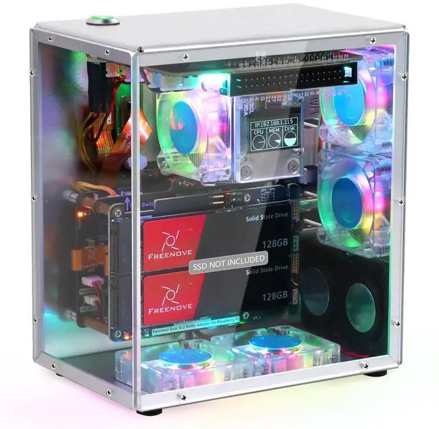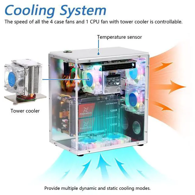 Cooling System: The speed of all the 4 case fans and 1 CPU fan with tower cooler is controllable. Provide multiple dynamic (CPU temperature control, case temperature control) and static (fixed speed) cooling modes, supports custom programming (Python) ^^