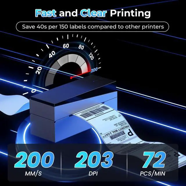 With 203DPI high-resolution and printing 72 PCS 4"X6" labels per minute. A greener and more cost-effective thermal printer! ^^ [Strong Platform Compatibility] - Label printer for small business is compatible with major sales platforms. Make printing more convenient. Ideal for your online small business for shipping packages ^^ [Easy to Set Up] - 249BT Thermal label printer 4x6 supplies detailed video and manuals, Helps you set up the Bluetooth label printer quickly and easily in less than a minute. Moreover, We also have a customer support team that can provide phone calls, email, and remote desktop operations no matter any time you need help