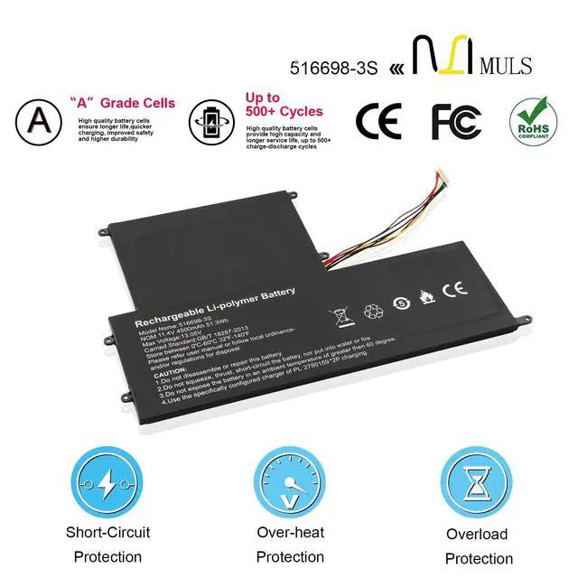 Voltage: 11.4V. 100% brand new. Up to 500 recharge cycles over the life of the battery. High-quality materials and circuit board. ^^ Replacement For LaptopFit for RTDPART EVOO ECV156-1 ECV156-2 EVC156-1BK EVC156-2BK. ^^ Compatible with Part NumberFit for 516698 516698-3S UTL-516698-3S. ^^ Safety Above AllOur batteries are certified by CE, FCC and RoHS to ensure your safety, and packed with prevention measures like short circuit, overheat and overcharge protection. Our laptop batteries are made with premium materials and circuit boards to ensure performance and durability. ^^ Give Customers the
