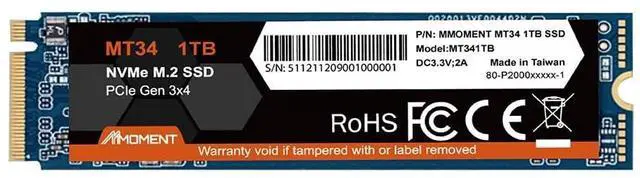 MMOMENT MT34 1TB SSD PCIe Gen3 NVMe M.2 2280 Internal Solid State Drive, Gen3.0X4, Read Speed up to 2000MB/s, for Laptop and PC Desktop