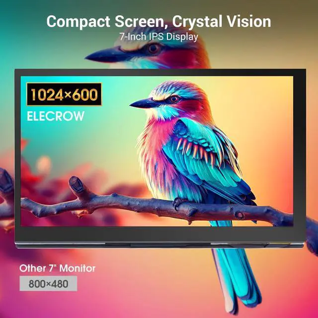 HD Visual Enjoyment: 7-inch IPS capacitive touchscreen with 1024600 resolution delivers vivid, true-to-life colors and a wide 178 viewing angle. Supports up to 1080P signal input via intelligent scaling for crisp, lifelike visuals from any angle ^^