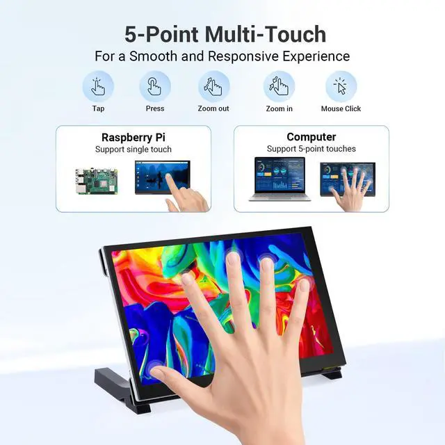 Responsive Touch Experience: The capacitive touchscreen supports 5-point touch, enabling smooth multi-touch functionality on Windows 11/10/8/7. Supports single-touch operation on Raspberry Pi (Raspbian, Ubuntu, Kali, Retropie) and Jetson Nano for precise and responsive control ^^