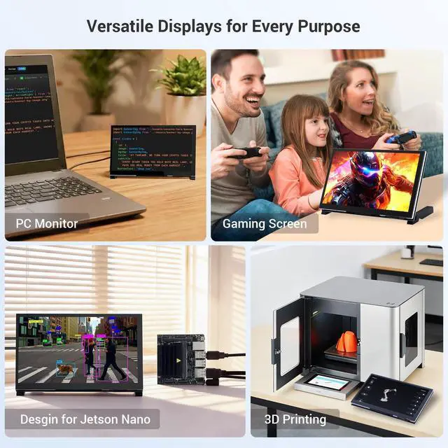 Plug & Play: No need to install additional software or drivers. Simply plug and use. The screen can be used as a Raspberry Pi screen, compatible with mainstream mini PCs such as Raspberry Pi 5, 4, 3 B+, BB Black, Banana Pi, and Jetson Nano ^^