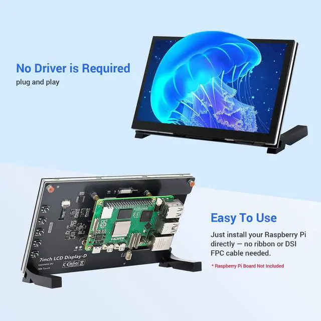 Mounting Design: Rear mounting holes allow for direct attachment of Raspberry Pi boards to the display, making it perfect for compact, all-in-one embedded projects. The included acrylic stand can also be placed on a desktop