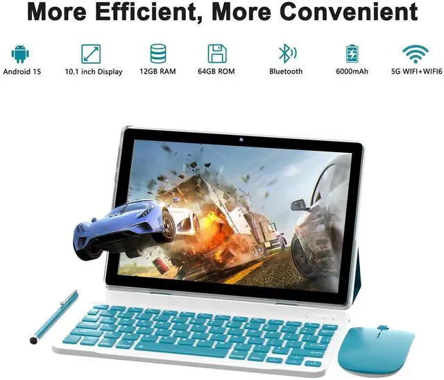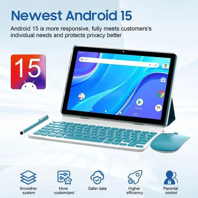 Feature Highlights: 8MP+2MP dual cameras, meeting the needs of photography and video calling Android 15 tablet 5G&WiFi 6 high-speed network, more stable connection 6000mAh large battery tableta, long-lasting endurance Android tablet with case, touch screen pen, keyboard and mouse, perfect for both office and entertainment Whether it's work, study, or entertainment, multiple layers meet your usage needs!