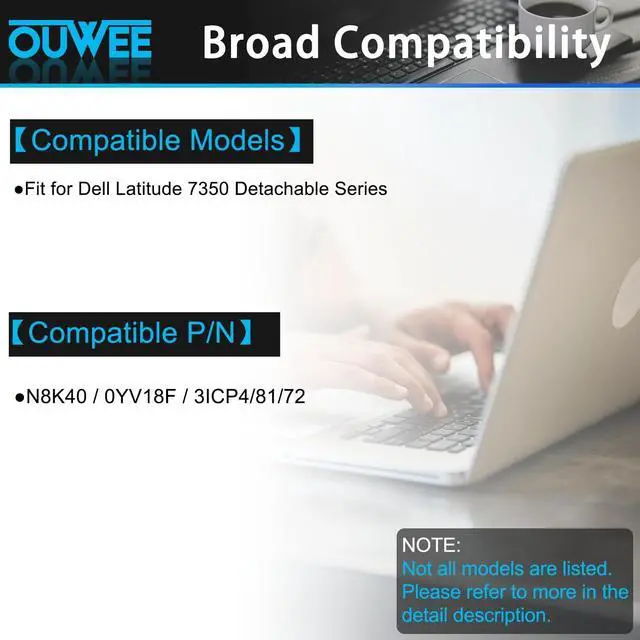 Condition: New; ^^ Compatible Part Number N8K40 Battery for N8K40 0YV18F 3ICP4/81/72 ^^ Replacement For Laptop for Dell Latitude 7350 Detachable Series ^^ Safe to UseAll OUWEE products are Certified by UL / CE / FCC / RoHS for safety. Strict guidelines for compatibility, strict quality control standards to ensure the true capacity, stable current and low self-discharge and standards compliance for environment safety. We are confident in the performance of the replacement battery. ^^ OUWEE Perfect After-saleRest assured with 30 days money-back and 12 months Warranty; 24 x 7 email support. Any questions you can contact with us via "Your Orders" tab in account. We are committed to resolving any situation in which our product does not meet your expectations.