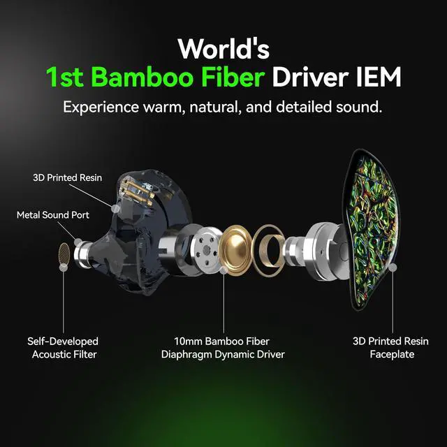 Vocalists Soul Bamboo Fiber Driver: A 10 mm bamboofiber dynamic driver delivers warm, clear vocals and lifelike detail. Great for vocals, acoustic, and jazzhear breaths, room reverb, and microdetails without harshness. ^^ One Driver, Done