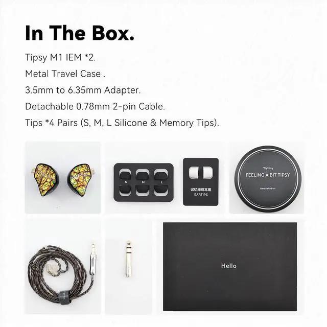 ^^ About Tipsy: Since 2015, Tipsy has built stagegrade IEMs for frontline artists. The M Series (M1/M3/M5) pursues true, reference tuning with handpolished resin shellseach pair unique. The HD Series (HD6/HD4) focuses on premium everyday listening, combining resin chambers with metal faceplates for a refined feel. ^^ Hear the