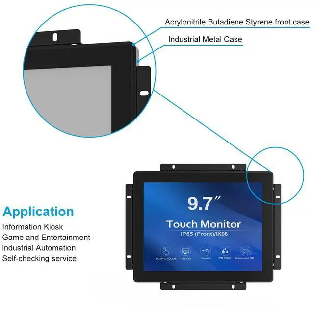 TOUCH READY -GreenTouch touch solution adopts the latest projected capacitive solution with (G+G) 10-point touch, it delivers great optical clarity and touch durability. 3mm thickness tempered cover glass provide front IK08 vandal-proof degree. ^^ FEATUREED ELMENTS -The touch screen is sealed to prevent the bad influence from dirt, dust and liquid, can meet the front IP65 water-resistant requirement. ^^ RICH INTERFACES - Coming with HDMI, VGA, DVI and Audio interfaces to meet different needs of various professional display application. ^^ COMMERCIAL GRADE - The GreenTouch open frame touchscreen monitor delivers the quality and reliability GreenTouch is known for.